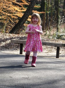 Zuzu naturally is able to get her energy out. You know when you’re 3; and good at it, you run everywhere, that is when you aren’t skipping or jumping:
