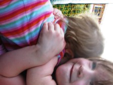 Who is usually thrilled to see her sister coming for her if there is a parent nearby to intervene when the weeble’s wobbling sets in. But sometimes not so much: