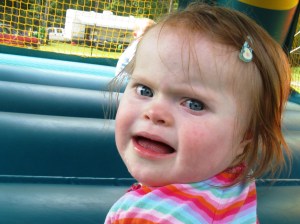 Frankly, I’m proud of her fluff. The girl has had multiple barriers to being able to put on and maintain good growth. After hearing the size of the opening in her intestine, I’m shocked that she didn’t ever end up with a Failure to thrive diagnosis. Between that, the heart defect and the growth expectations for a child with Down syndrome; I’m still blown away by her blossoming. Since she was able to flourish under so much adversity, it shouldn’t come as a surprise that now that weight gain can come a little easier; it’s coming a little too easy. Her pediatrician likened her 20-24 ounces a day of whole milk to the equivalent of feeding her 6-9 strips of bacon a day. To quote Cathy, “AAAACCCKKK!!!!”