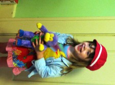 Not that she hasn’t taken a cue or two from Dad. He is in charge of getting her out the door in the morning. So there are prompts about what “matches” means. And she’s pretty creative in her explanations as to how they match if she feels Lovey hedging, “But see how the tiny purple flower on the bottom of the skirt matches the purple in the plaid pants that go under it and how the green plaid stripe in my pants match the green in the polka-dot on my top Daddy!”