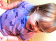 I really didn’t think anyone could make bacon intake sound deadly to me. But since I can now hear her little arteries clogging up in my sleep we’ve decided to head his advice. In the meantime we’re looking for ways to increase the good fat in her daily intake without increasing meal portions too much. Currently she eats 3 meals a day- with a meal consisting of a Stage 2 food pack with DHA in it. She does also get 1 ml of fish oil daily. She has to have to have her drinks thickened, so when she isn’t slurping up Kefir, (low-fat, plain) in her straw cup, we thicken her milk with either baby oatmeal or “thick-it”; depending on how easily things are coming through on the other end. She drinks a 4 oz cup at each meal and then one at bedtime and one during the night with the one time a night she wakes up. It really doesn’t seem like a lot to me- nor do I see obvious ways to cut out calories other than skimming the fat out of the milk. She also has recently started showing little bumps on her face- so we may be switching over to a non-cow milk soon as well.